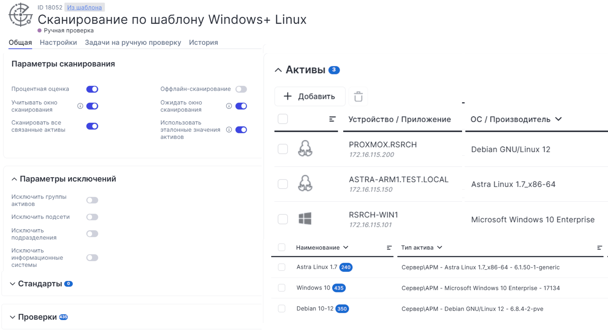 Автоматизация процесса, от обнаружения активов и технологических платформ до приведения к соответствию их настроек, позволяет освободить ресурсы аналитиков и ИТ-специалистов. В случае выявления несоответствия конфигураций активов эталонным значениям, значения при помощи коннекторов приводятся к заданным. Ведение профилей технологических платформ (например, операционных систем, СУБД, прикладного ПО), содержащих перечень релевантных проверок, можно проводить как вручную, так и автоматически по расписанию (рис.3).